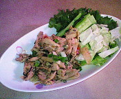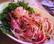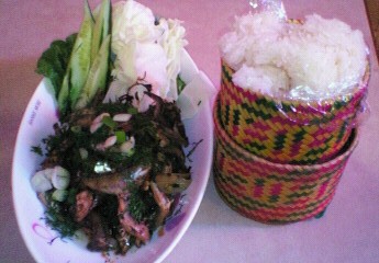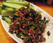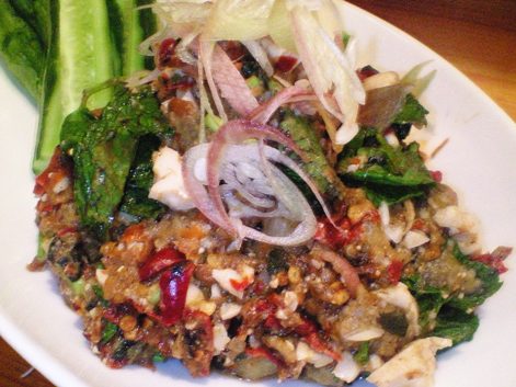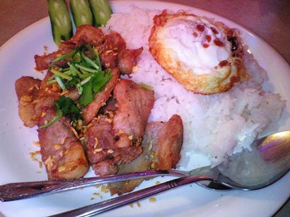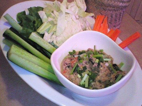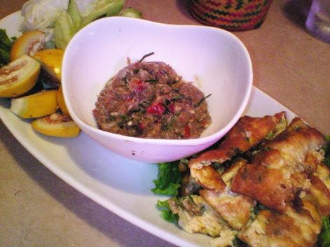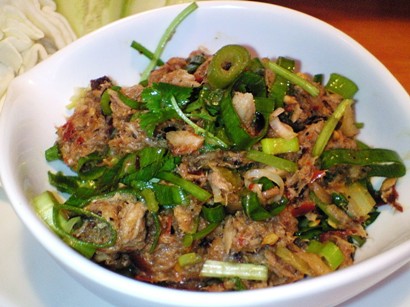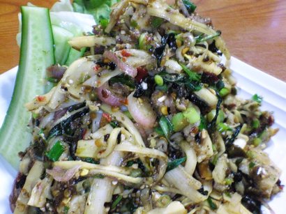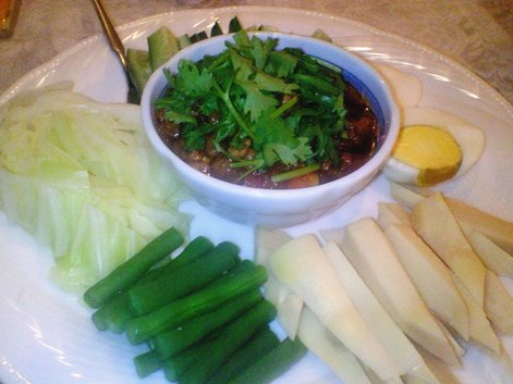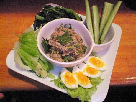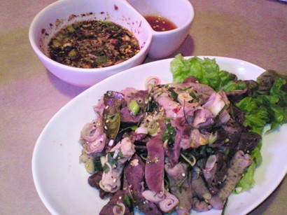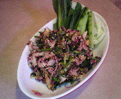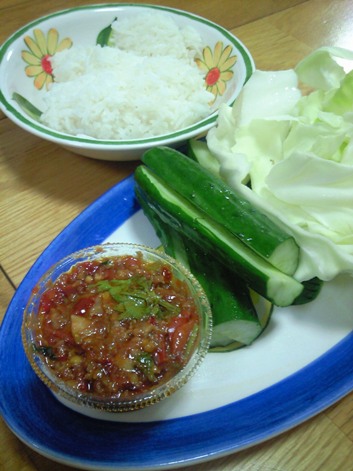今日はナムヂャイで「ナムプリックオーング」を買ってきました。北料理らしい辛く油っぽい感じでした。